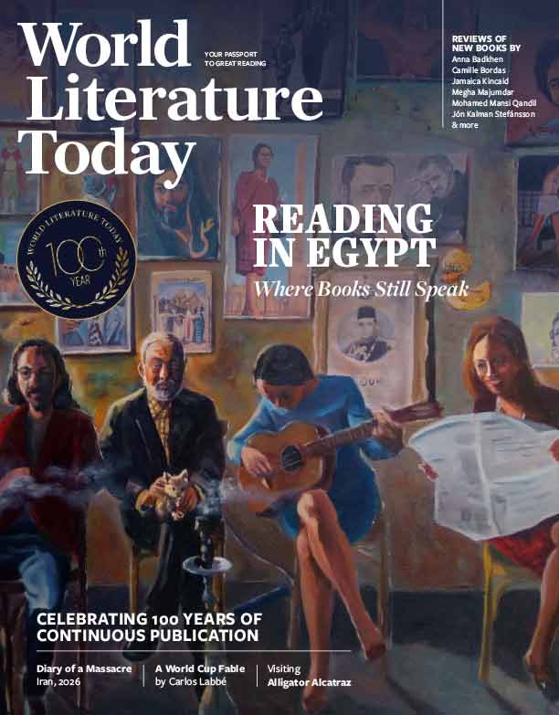 With cover art by Reda Khalil Amin,“Reading in Egypt”headlines the May 2026 issue ofWorld Literature Today. In their tripartite essay, Sherine Elbanhawy, Gretchen McCullough, and Lana Abdel Rahman describe the Egyptian reading scene as “a living practice—shaped by history and rupture, by language and loss, by the places where books are found and the communities that keep them in circulation.” Additional highlights include Marlene Olin’s “Alligator Alcatraz”; an eyewitness “Diary of a Massacre” about the January 2026 Iranian protest movement; and a World Cup essay by Carlos Labbé. More than thirty reviews provide a wealth of new and noteworthy books for avid readers, alongside a rich assortment of additional poetry, creative nonfiction, interviews, and fiction, plus a Brazzaville postcard and a booklist from the Philippines.